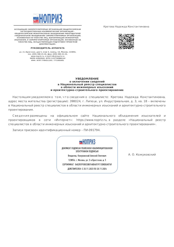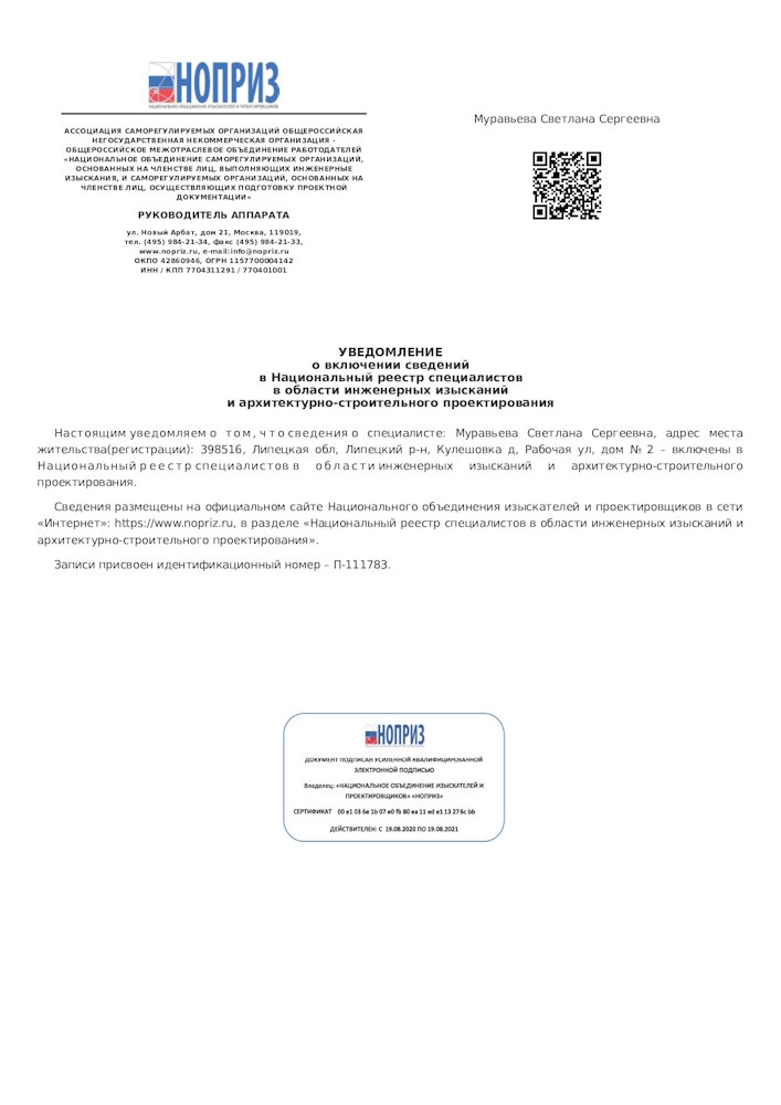 Муравьева Светлана Сергеевна Гл. инженер проекта